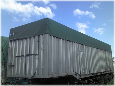 長大・重量物を輸送する『平ボディ車』向けに、荷物が濡れない・荷崩れしない為のシートを製作しています。長期間・悪天候での使用による破損の修理も承っております。